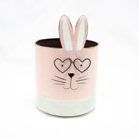 Vaso Metal Coelho 13cm Rosa